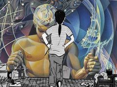 Ist das Kunst oder kann das weg? Die Verbindung von Kunst und Propaganda war allgegenwärtig in der DDR. Ideologisch aufgeladene Werke schmückten Häuser und öffentliche Plätze. An den sozialistischen Wandbildern schieden sich die Geister. Unübersehbar dienten sie der weltanschaulichen und ästhetischen Erziehung der Bevölkerung. Berühmte Werke wie Willi Sittes »Kampf und Sieg der Arbeiterklasse« (1977) in Suhl oder Josep Renaus Mosaik »Die Beziehung des Menschen zu Natur und Technik« (1984) in Erfurt sind heute noch umstritten. Anlass zur Diskussion bietet uns die Rückkehr von Renaus Bild nach Erfurt, das ab Herbst 2017 wieder den Moskauer Platz zieren wird.