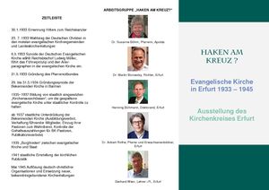 „Haken am Kreuz? – Evangelische Kirche in Erfurt 1933-1945“ ist das Thema einer Ausstellung, die am kommenden Montag (5.5.) im Landeskirchenamt der Evangelischen Kirche in Mitteldeutschland (EKM) in Erfurt zum ersten Mal gezeigt und eröffnet wird. Sie wird bis zum 30. Juni dieses Jahres im Landeskirchenamt, dem Collegium maius, zu sehen sein.